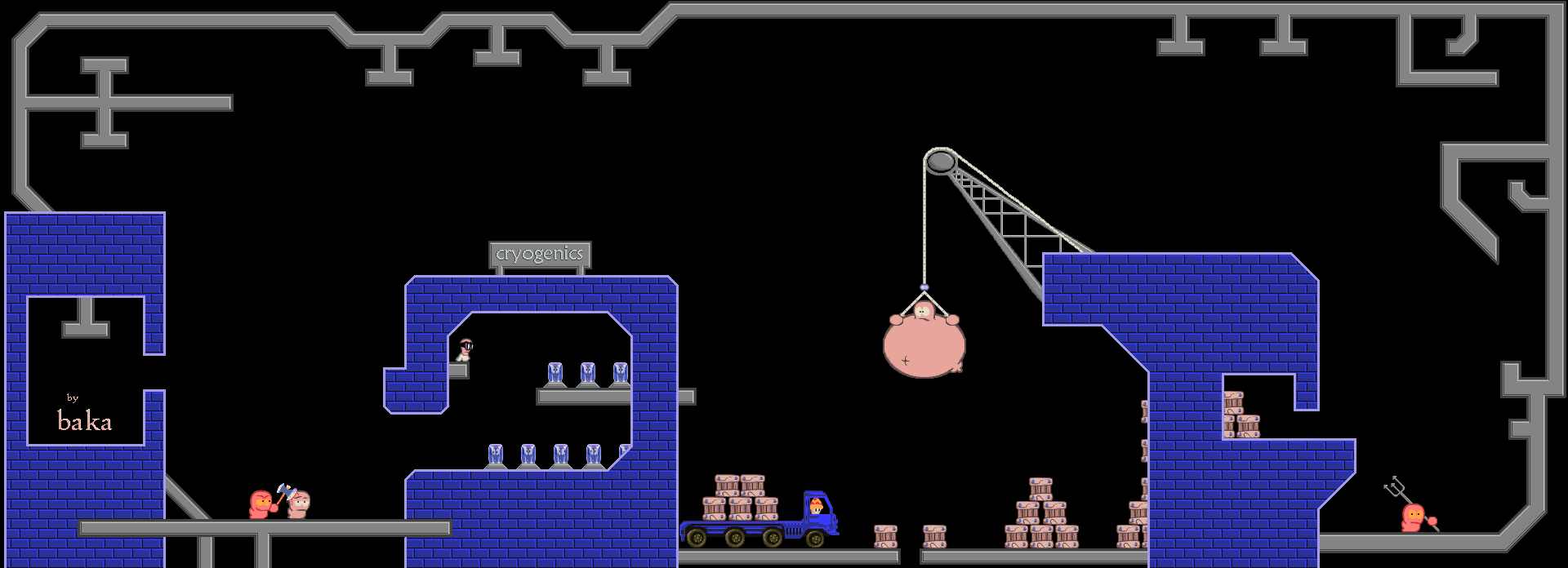 Pyroman starts turn [00:06:55.82] Ninja Rope[00:07:04.88] Ninja Rope[00:07:05.28] Cluster Bomb